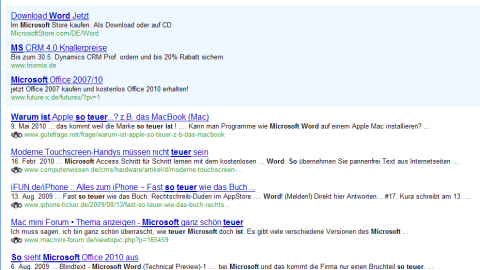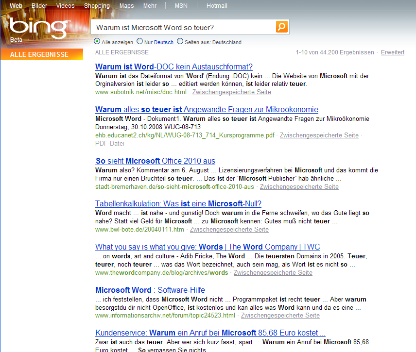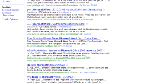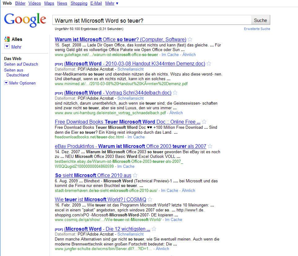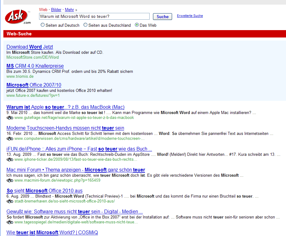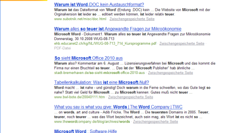 Ich hab auch noch mit den Satz „Warum ist Microsoft Word so teuer“ gesucht:
