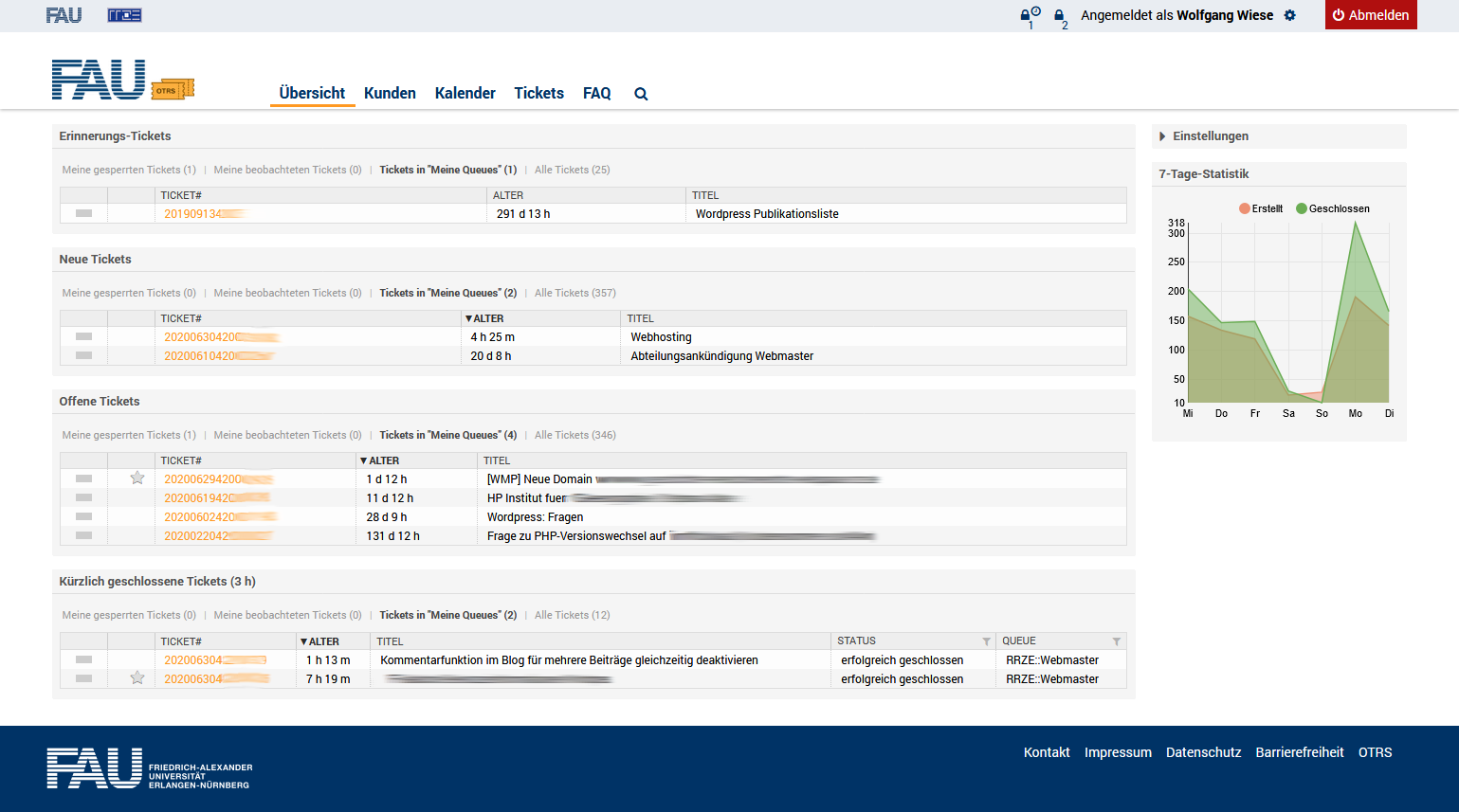 Die Kollegen haben unser OTRS auf die Community-Version 6 aktualisiert.