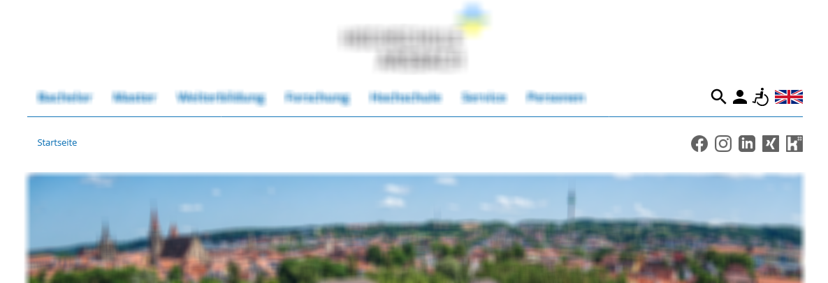 Die Symbole sollen zwar nur visuell wirken, aber ich gebe trotzdem mal die unsichtbaren Linktexte an: „Suche“, „Login“, „Barrierefreiheit“, „This page in English“.